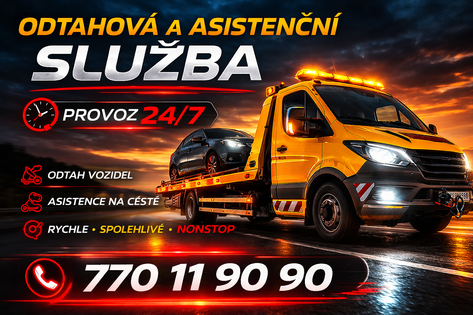 Jsme odtahová a asistenční služba se zaměřením na rychlou a spolehlivou pomoc řidičům v nepříjemných situacích na silnici.